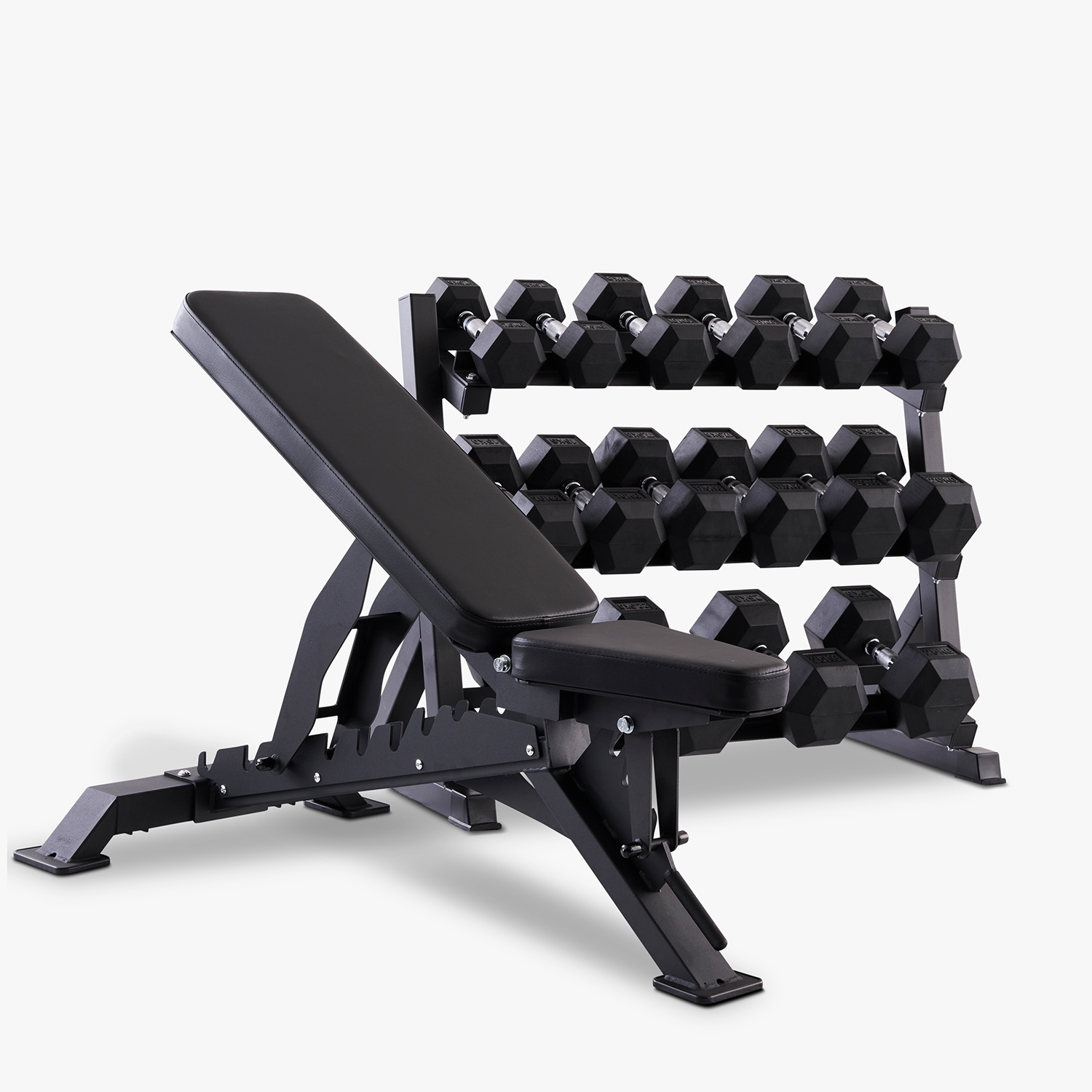Hex håndvægte (sæt, 7,5-25 kg) inkl. stativ og justerbar bænk