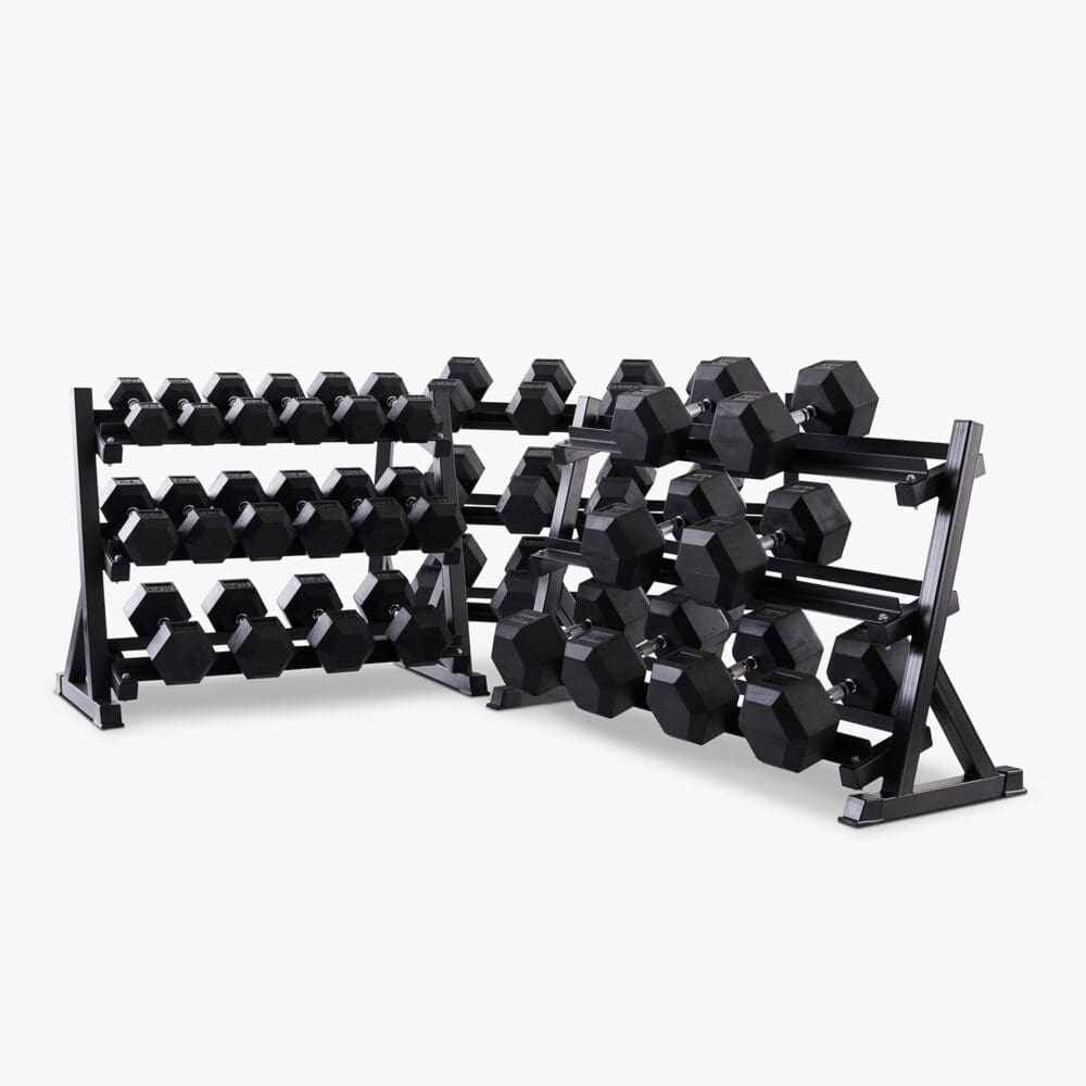 Hex håndvægte (sæt, 7,5-50 kg) inkl. stativ