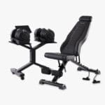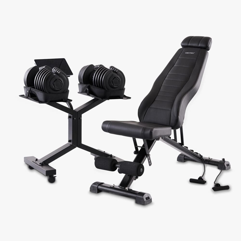 Denne træningspakke bestående af et sæt justerbare håndvægte (inkl. stativ) og den justerbare og