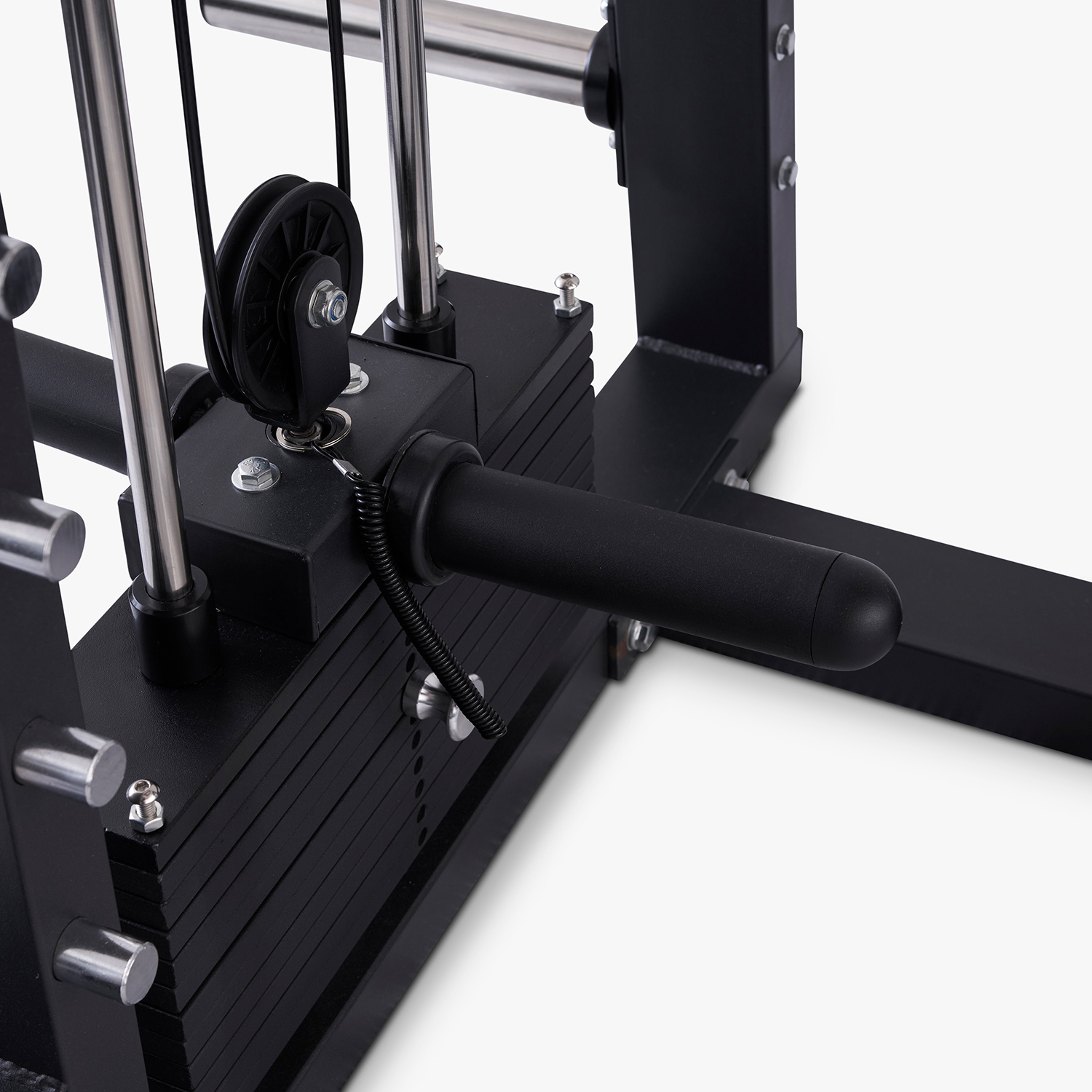 • 2 x plate loads – som giver dig mulighed for – med vægtskiver – at øge belastningen på de fastmonterede vægtstakke med op til 100 kg i hver side.